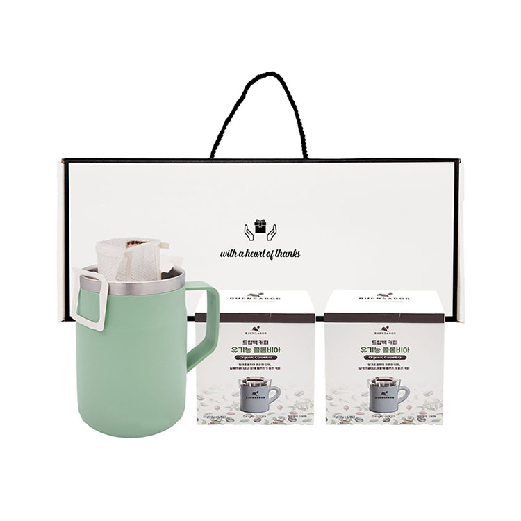 웰세스 이중 스텐 머그컵 1P + 드립백 커피 1종 2P 세트