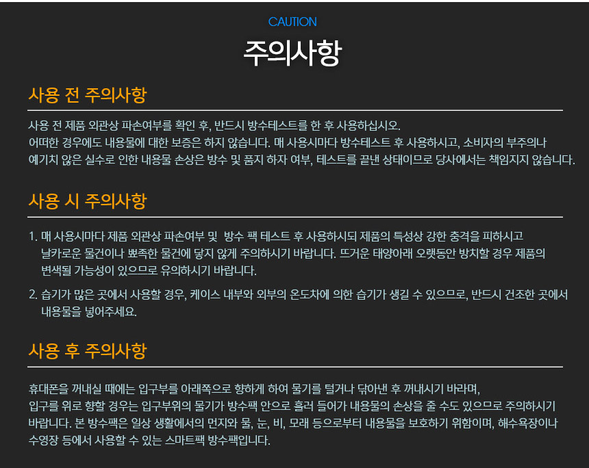국산 정품 스마트폰 방수팩, 1억원 보험가입