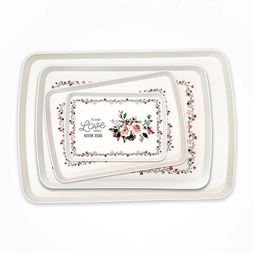 무광멜라민 직쟁반 콤비(장미) 3P 세트