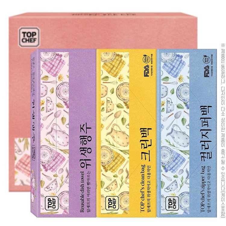 [탑셰프] 빨아쓰는위생행주+위생장갑+크린백+컬러지퍼백 (4종세트)