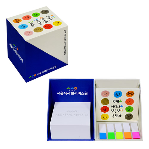 칼라 점착메모지+큐브 박스 메모함