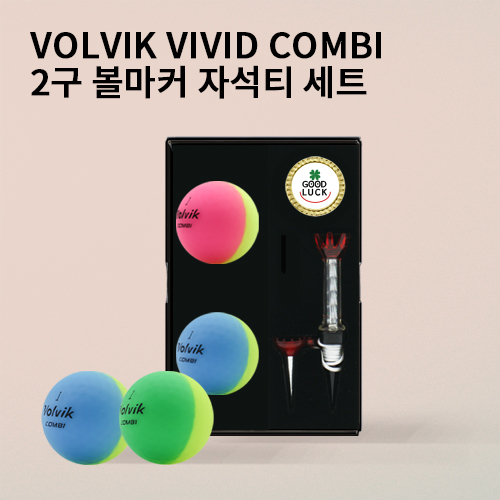 [NEW 볼빅] 비비드 콤비 2구 자석티세트 (3pc) 반반 골프공 골프세트