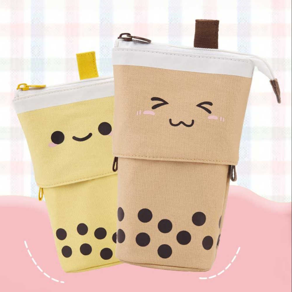 버블티모양 접이식 필통 파우치 연필꽂이 수납 문구
