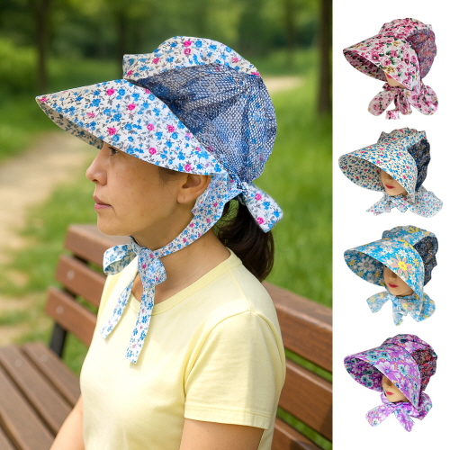 뜨거운 여름 꽃무늬 햇빛가리개 모자 썬캡 밭일모자 낚시 캐디 농사 해수욕장 일..